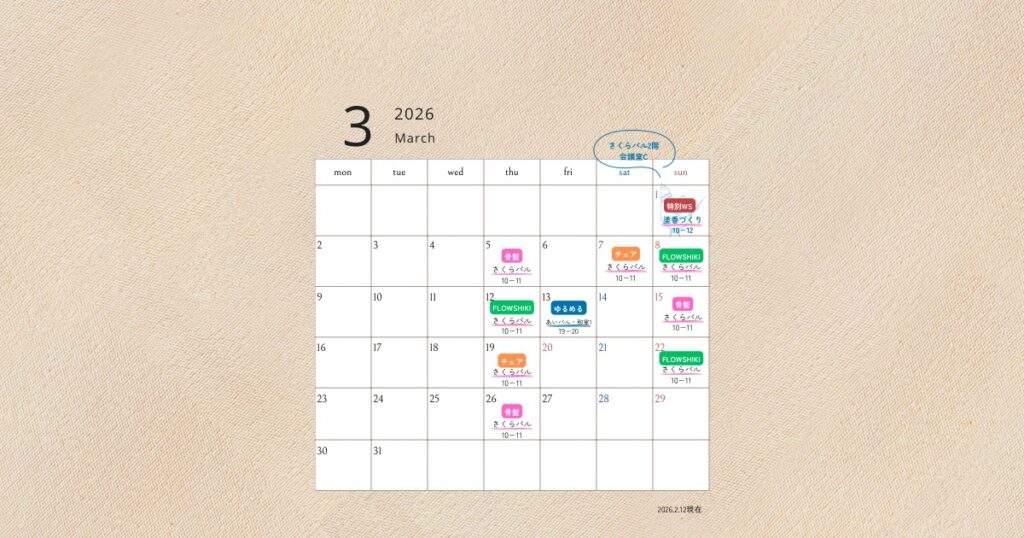 3月のスケジュール 今、確定しているところまでお知らせいたします。