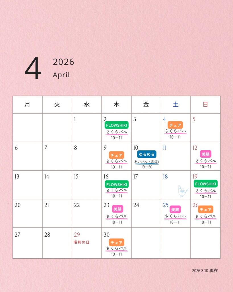 3月・4月のレッスンでは、最後に少しだけ「顔ヨガ」を行います✨ 顔ヨガとは、筋トレとストレッチを用い…