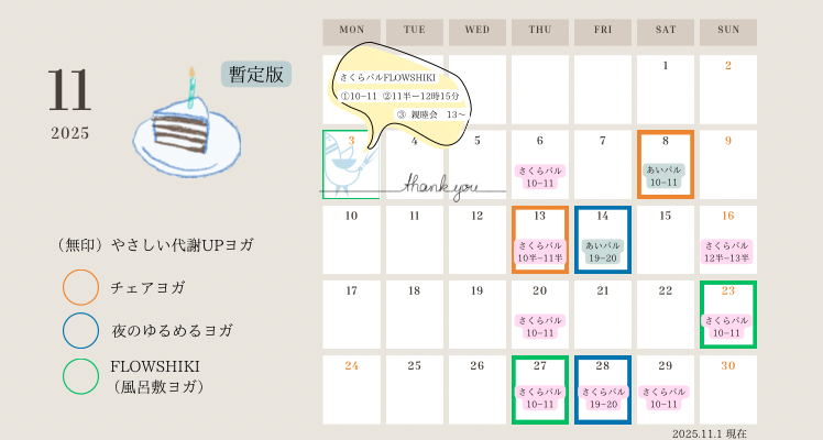 いつもヨガ教室こるりをご利用いただき、誠にありがとうございます。おかげさまでこるりは、この度1周年を…