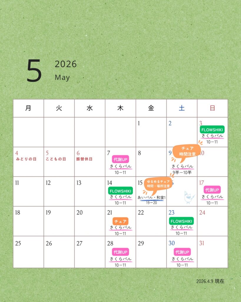 少し早いですが、5月のスケジュール(暫定)をお知らせします。 5月はGWもあり、何かとお忙しいと思い…